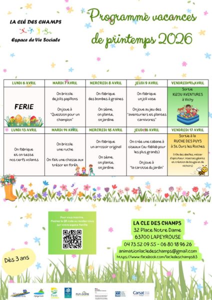 La Clé des Champs, programme des vacances de printemps.