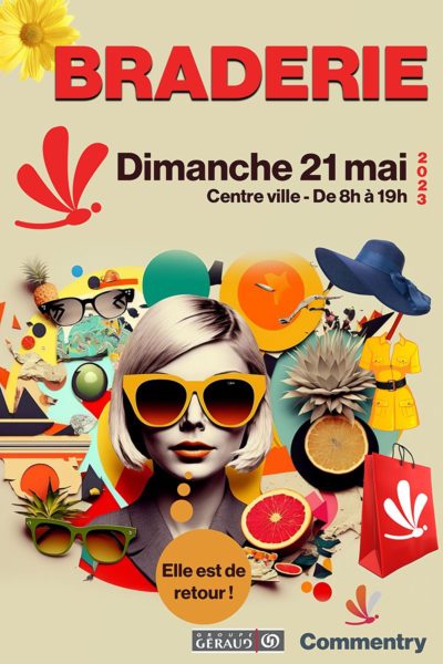 Après 3 ans d’absence, la braderie de Commentry, organisée conjointement par les services de la Ville de Commentry et le groupe GERAUD, spécialisé dans la gestion des marchés, fait son grand retour le dimanche 21 mai. Que vous ayez envie de vous faire plaisir ou simplement d’assouvir votre curiosité, vous pourrez déambuler au hasard des rues Jean Jaurès et Christophe Thivrier, à la découverte des étals débordant de textiles, objets de décoration, objets insolites, produits alimentaires… L’ambiance aussi promet d’être haute en couleur, avec de nombreuses animations familiales. Buvette et restauration rapide seront également de la partie, à la bonne franquette !