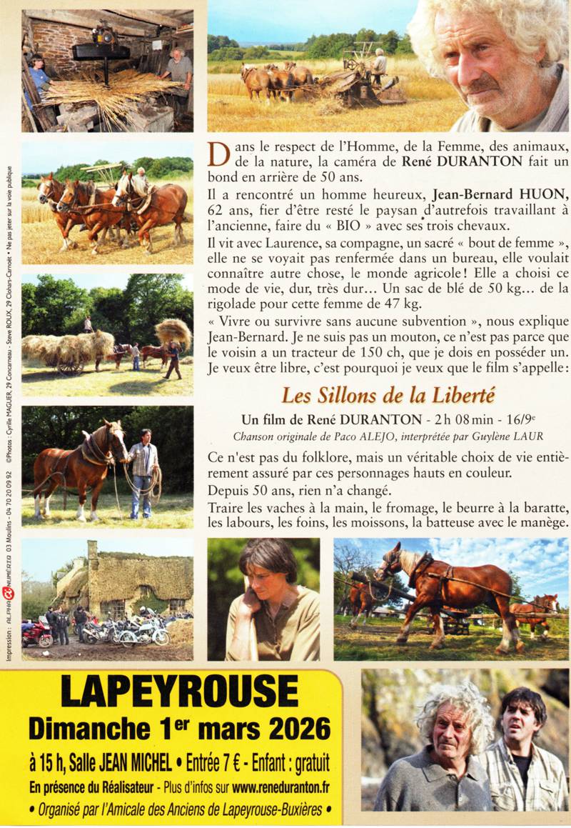 Cinéma à Lapeyrouse. « Les sillons de la liberté ».