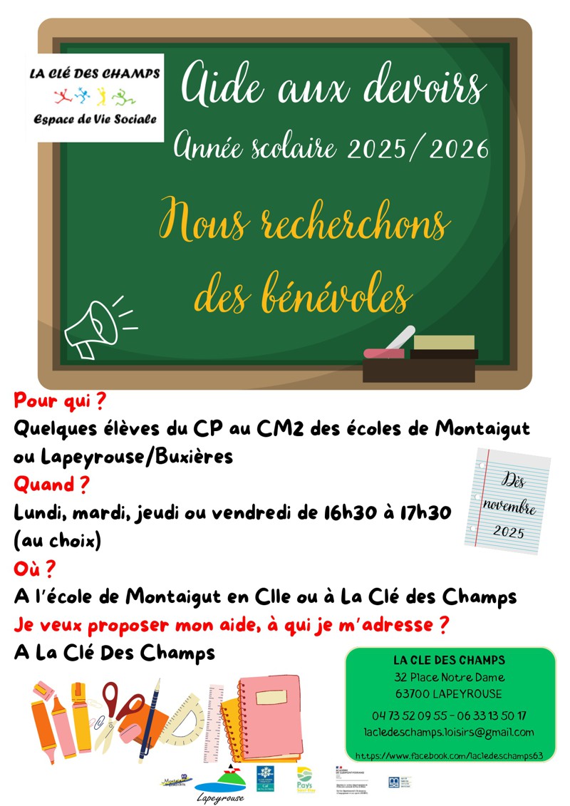 En tant que Point d’Appui à la Vie Associative (PAVA), l’Espace de Vie Sociale La Clé des Champs organise :